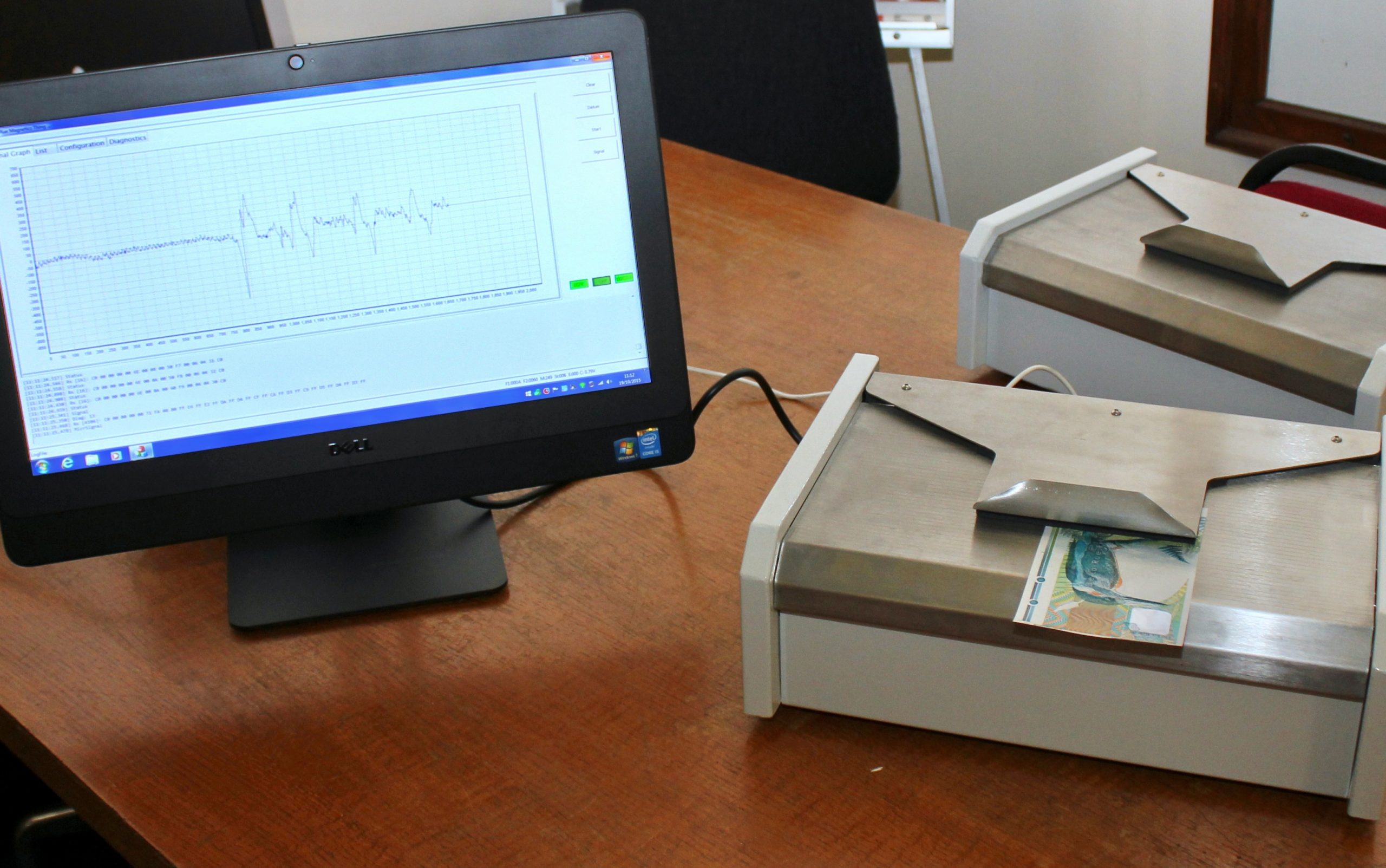 The MagScan is a device that scans and records the magnetic signal from documents containing hard magnetic material. Magnetic content typically consists of magnetic ink, metallic strips, MICR numbering or the security thread.